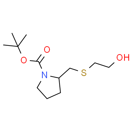 | English name: | 2-(2-Hydroxy-ethylsulfanylmethyl)-pyrrolidine-1-carboxylic acid tert-butyl ester |